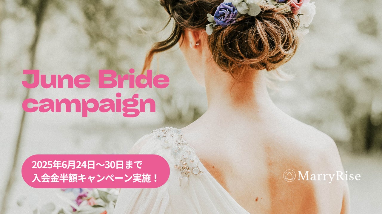株式会社MentarRise(本社:東京都渋谷区、代表取締役:鈴木寿治)の東証プライム上場企業|株式会社IBJ正規加盟店の結婚相談所 「MarryRise(マリーライズ)」は、6月24日(火)〜6月30日(日)の1週間限定で、入会金を通常99,000円(税込)のところ半額49,500円(税込)にする「MarryRise June Bride Campaign」を実施いたします。