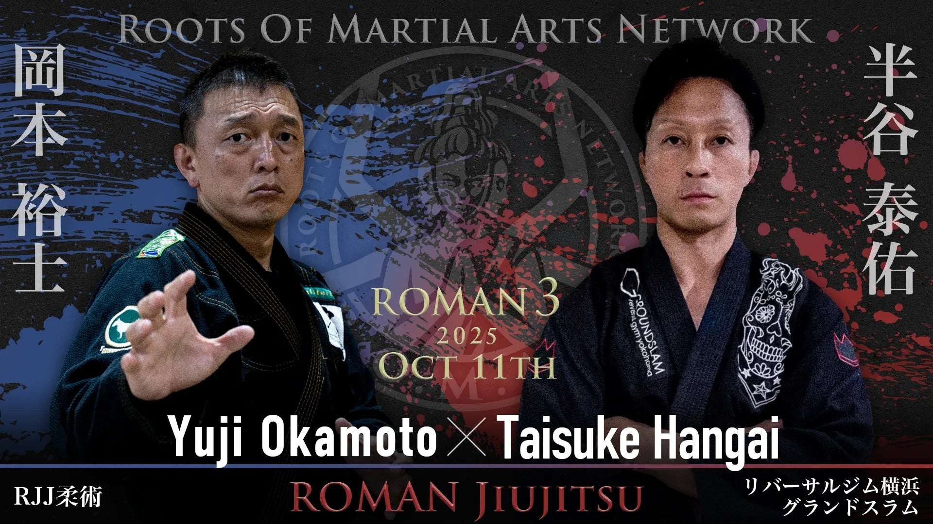 異常な程一本決着に拘り“鬼極”との異名を取る岡本裕士。現代の良くも悪くもゲーム要素が取り入れられた柔術では奇異に映るこのスタイルだが日本柔術界の父中井祐樹や現代柔術の開祖グレイシー一族はこれを柔術の本来あるべき姿だと言う。そんな原点の追求者であり一本勝ちの山を築く極め職人岡本のROMAN柔術参戦が決定。