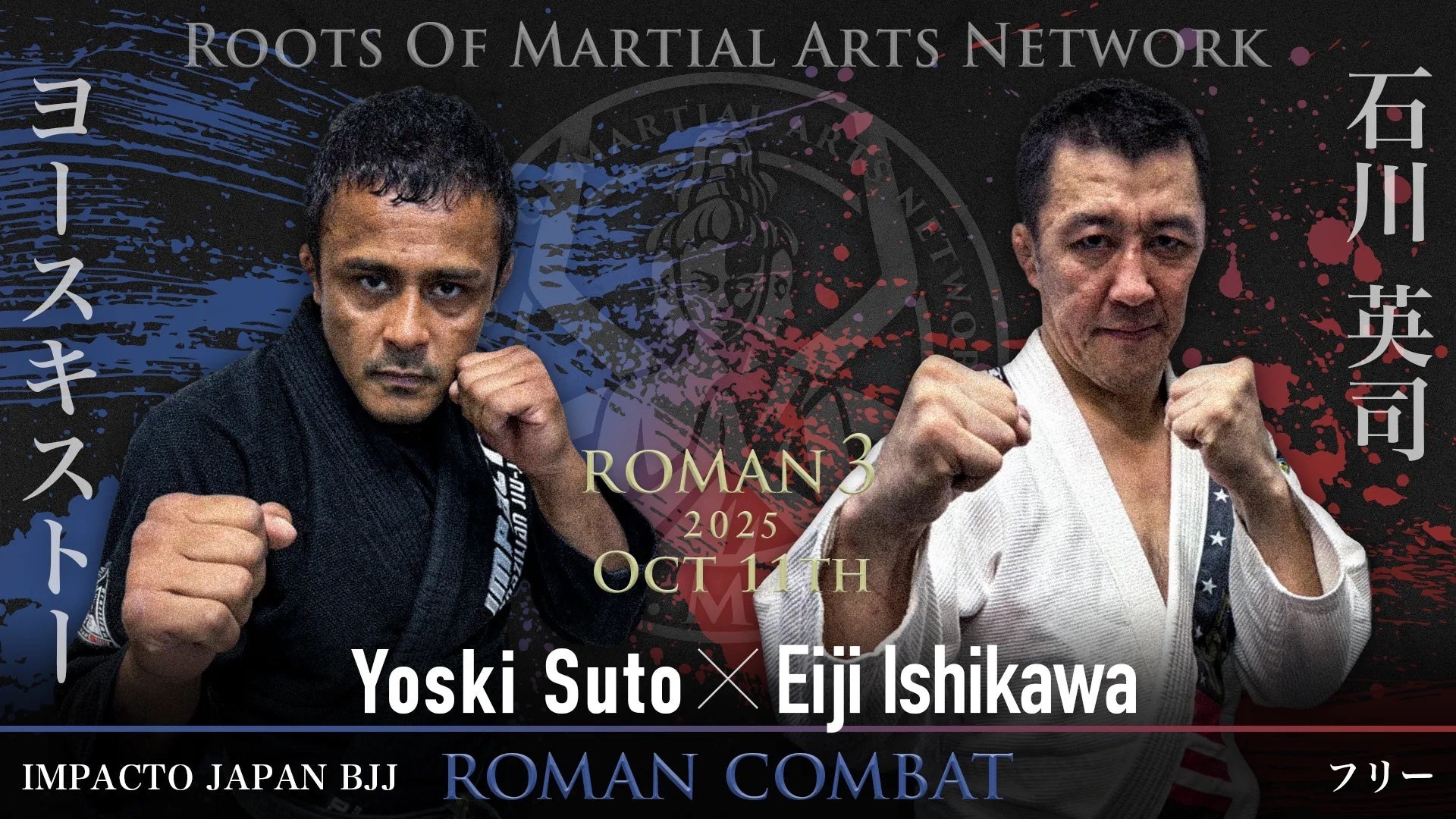 ROMAN株式会社(本社:神奈川県鎌倉市、代表取締役CEO:渡辺直由)は、2025年10月11日(土)にGENスポーツパレス(東京都新宿区)にて開催する第3回大会「みつ葉グループ PRESENTS ROMAN 3」の対戦カード第一弾を発表いたしました。観戦チケット販売を開始し、またU-NEXTでのライブ配信が決定しました。柔術、MMA、柔道、プロレス、サンボ、武術など様々なバックボーンを持つ格闘家による道着着用MMA、ROMAN柔術ルールにおける注目カードが決定しました。