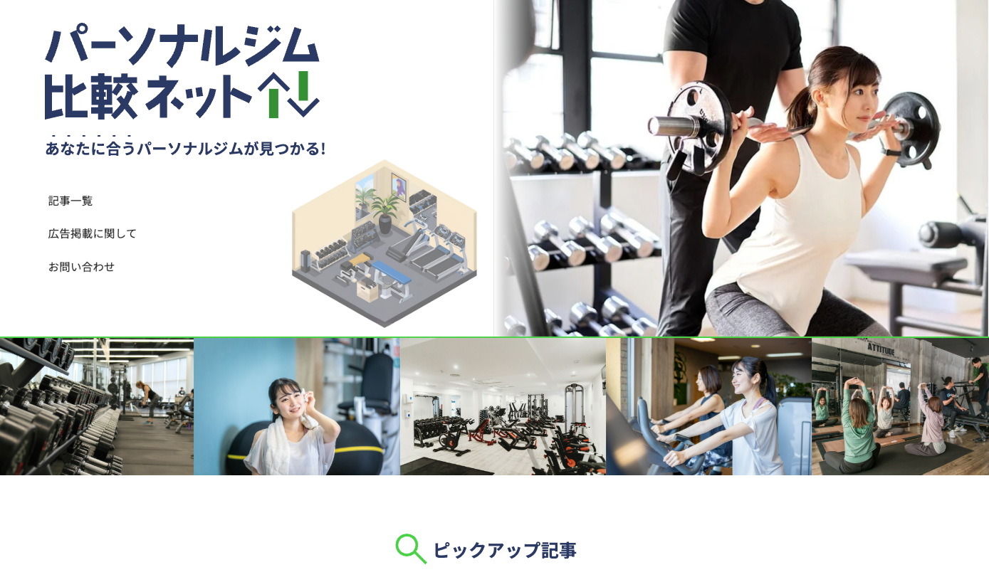 パーソナルジム比較ネットは、国内のパーソナルジムの特徴やおすすめポイントなどを紹介するサイトです。