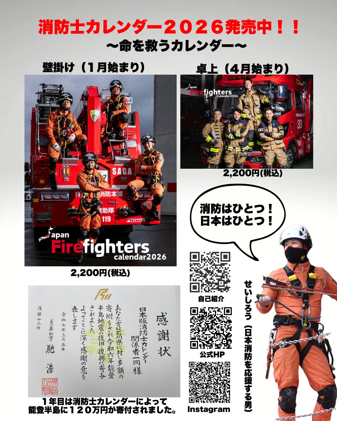 日本各地の消防士が掲載された日本版消防士カレンダー2026は絶賛発売中です。