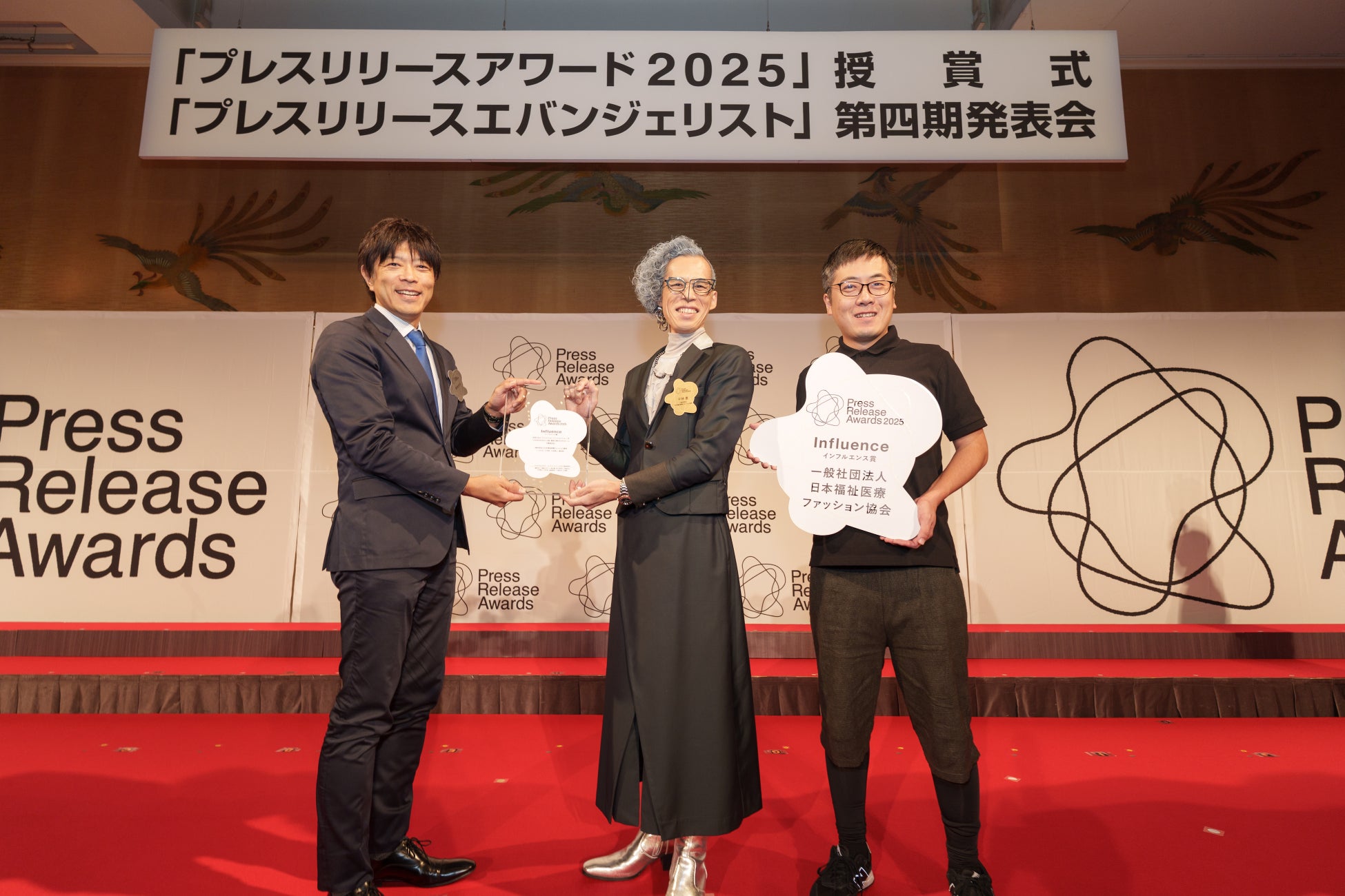 一般社団法人日本福祉医療ファッション協会が発信した「O-MU-TSU WORLD EXPO」に関するプレスリリースが、株式会社PR TIMES主催「プレスリリースアワード2025」において、「インフルエンス賞」を受賞しましたことをご報告いたします。年間43万件のプレスリリースの内、過去最多のエントリー総数4,573件の中から選出されました。