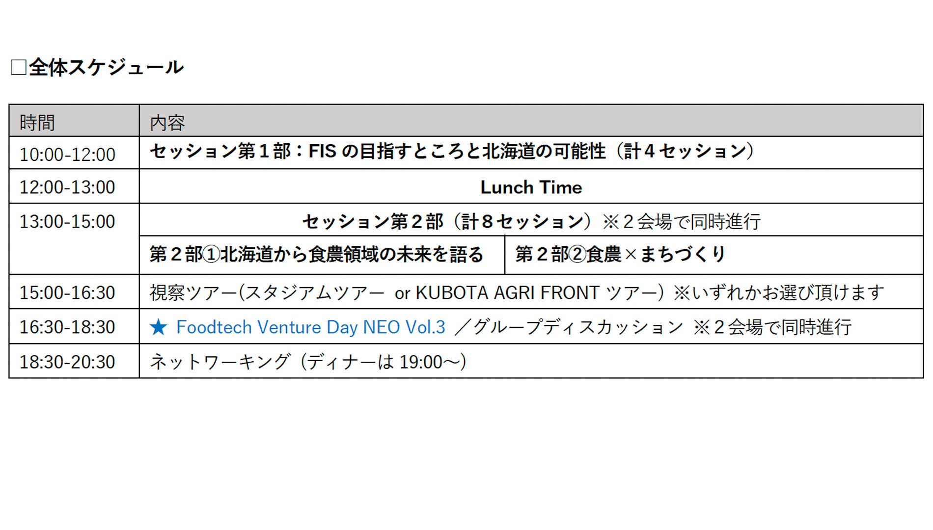 ■ 「Foodtech Venture Day NEO Vol.3 北海道の可能性」開催概要