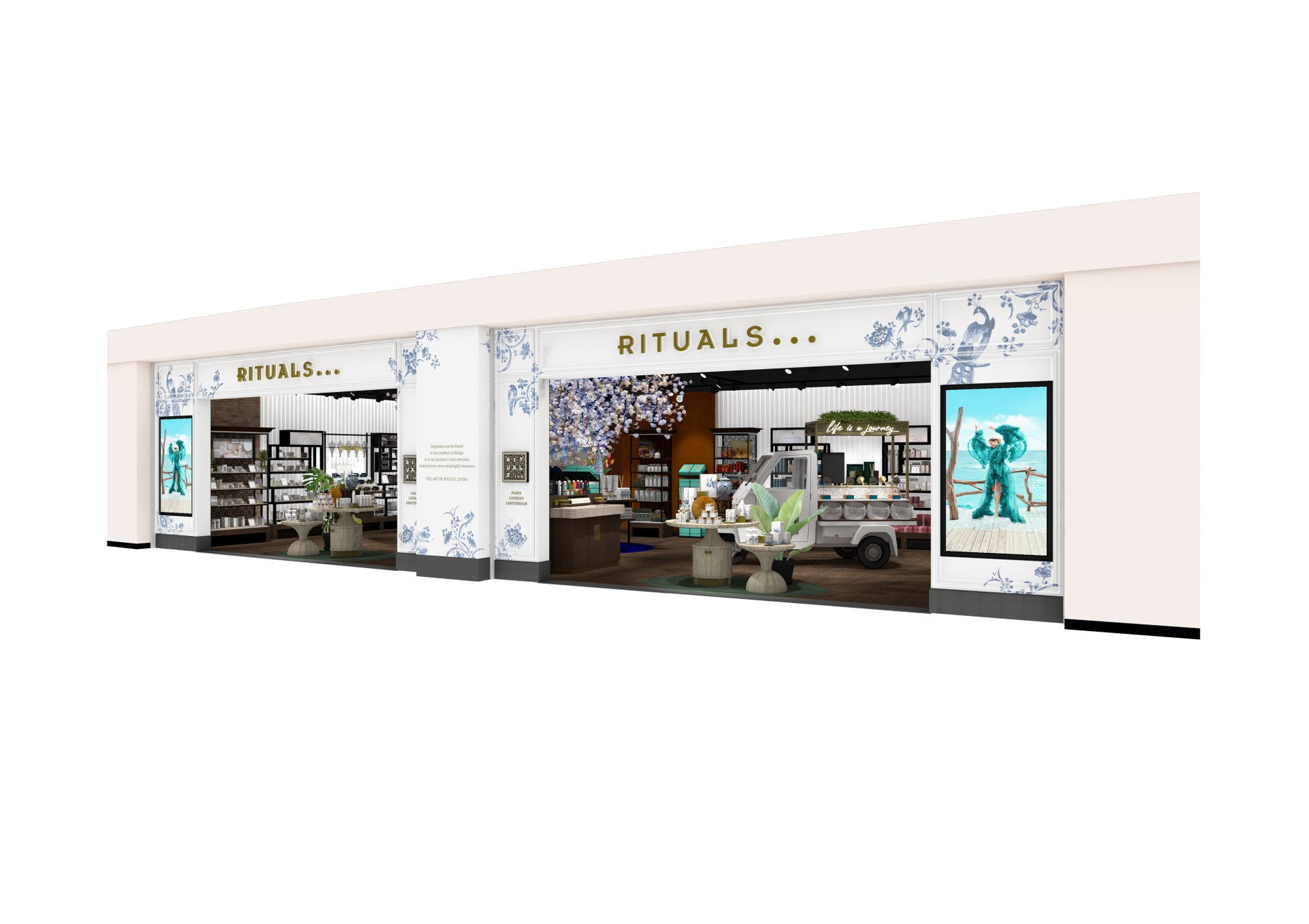 国内最大級の大きさを誇るプレミアムサイズのこちらの店舗は、日本のリチュアルズ店舗では初めて、現在では希少なヨーロッパ各地で親しまれているイタリアの伝統的バイクメーカー「ピアッジオ」のクラシックな三輪車を店内に設置。車でお越しの方が多い「ららぽーと横浜店」のお客様に親しみいただきやすい、カー エア フレッシュナーを中心としたカーアイテムをディスプレイいたします。ユニークなデザインと実用性で、多くの人々に愛されてきた「ピアッジオ」のクラシック3輪車とスタイリッシュな車の旅に欠かせないリチュアルズのカーアイテムを是非お楽しみください。
