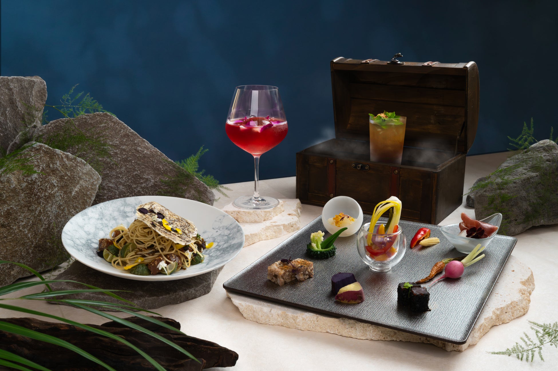 スパ ジャングリアのグランドフロアに位置するTROPICAL OASIS(トロピカルオアシス)は、やんばるの美しい景色を望みながら、身も心も癒されるレストラン&バーです。革新性と伝統を融合させた地産地消の食事とカクテルをお楽しみいただけます。沖縄では医食同源の思想から、健康に良い食べ物のことを命薬(ぬちぐすい)と呼びます。心と体に元気があふれる滋味あふれる島野菜や沖縄県産和牛など、島の恵みをモダンなビジュアルの一皿でご提供します。絶景温泉を満喫した後の余韻に浸りながら、南国リゾートらしい色彩感あふれる美食体験を心ゆくまでご堪能ください。