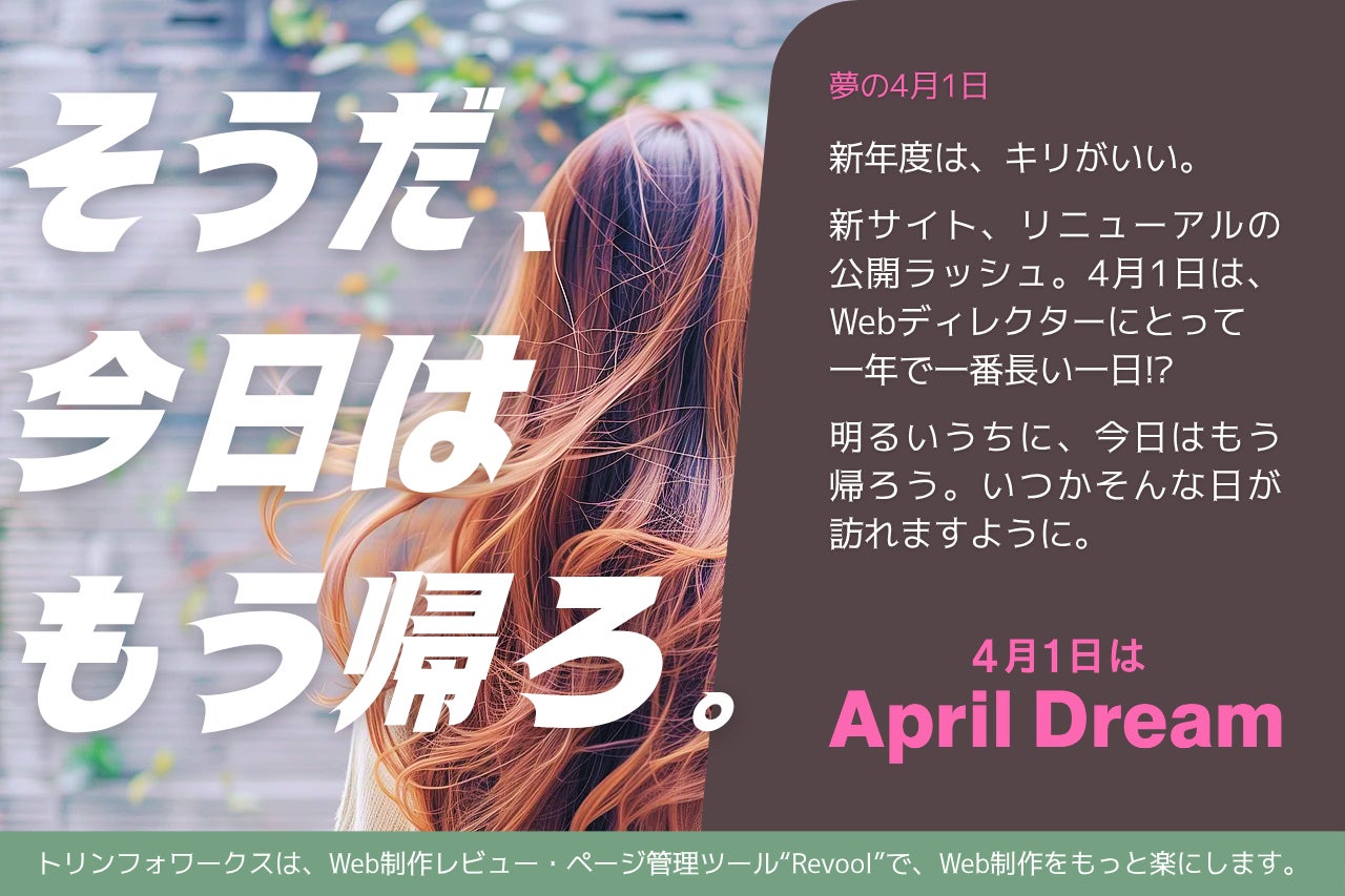 当社は、4月1日を夢を発信する日にしようとするApril Dreamに賛同しています。このプレスリリースは「トリンフォワークス」の夢です。