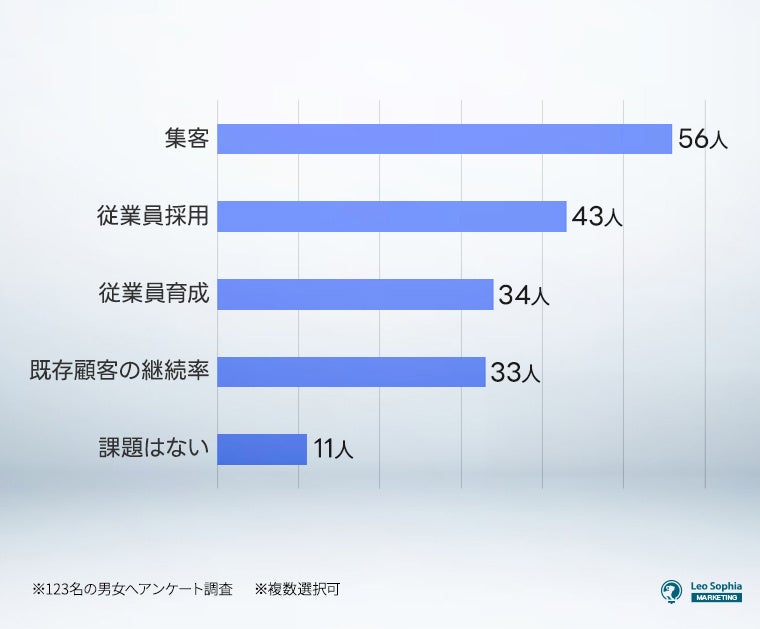 しかし「課題はない」(11人)と回答した方も存在し、このような店舗では既にSNSや広告を活用した効果的な集客と従業員の教育体制が整った効率的な運営体制を構築していると言えるでしょう。