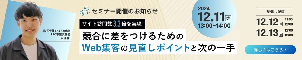 集客に課題を感じている方や解消に向けた具体的なアクションを模索している方は、以下からセミナーにご参加ください!