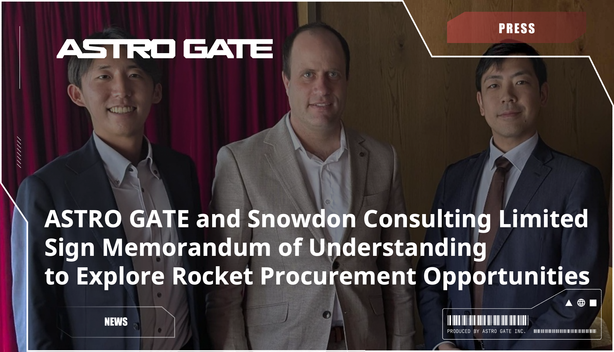 ASTRO GATE株式会社(本社:日本・東京)とSnowdon Consulting Limited(本社:ニュージーランド・オークランド)は、ロケット調達に関する連携の可能性を探るための枠組みを確立することを目的とした、了解覚書(MOU)を締結しました。