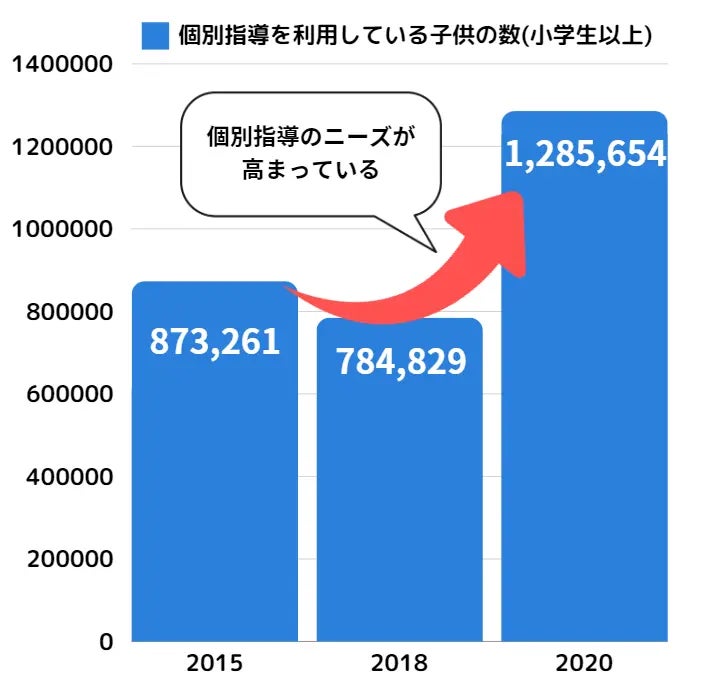 現在、子供の個性重視や学習ニーズの多様化に伴い、大人数に画一的な教材・指導を提供する集団指導方式から、個別指導方式へのシフトが進んでいます。実際、良い先生にマンツーマンで教わると、お子様のやる気や学力は飛躍的に向上します。