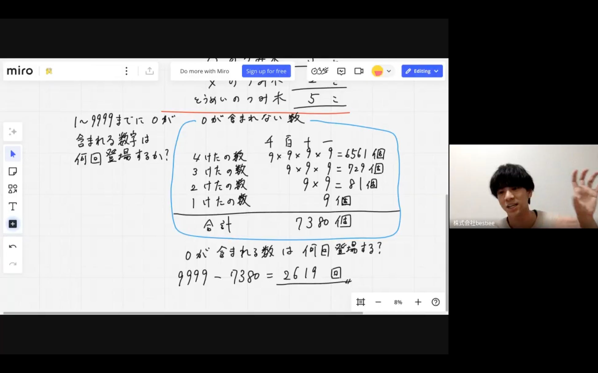 Google Meetで先生の説明を聞きながら、Miroで板書や問題解答