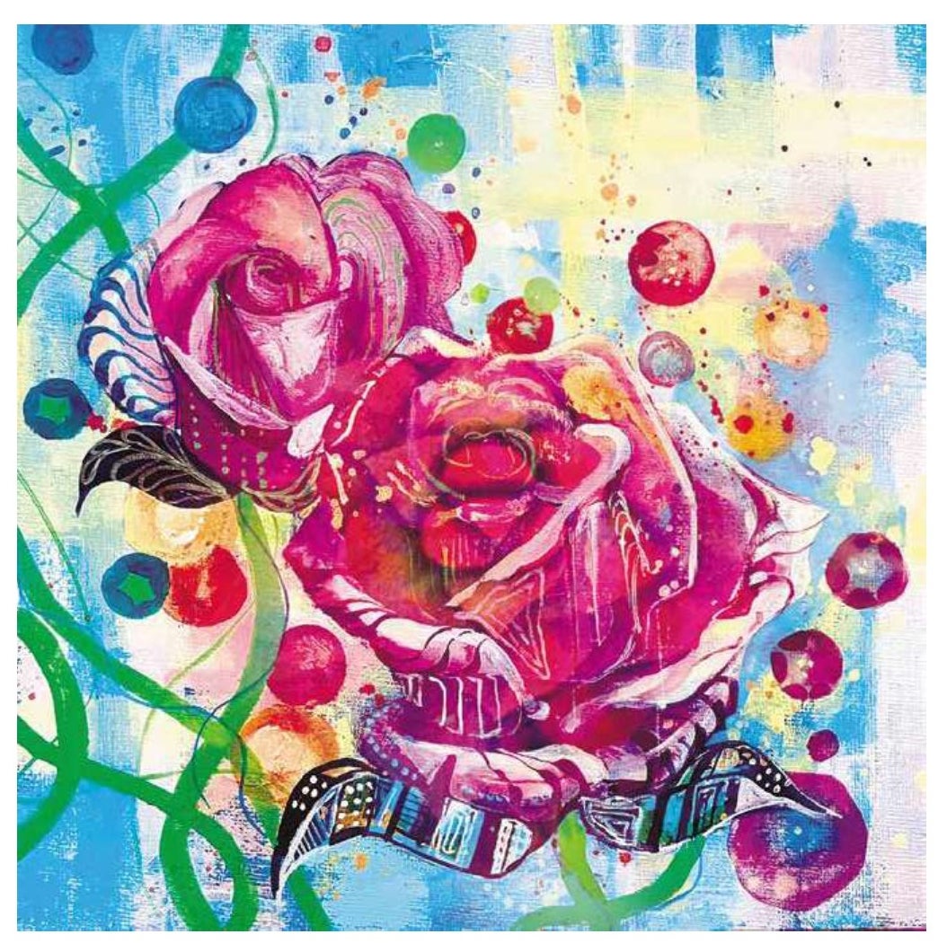 【たけさん×にしぽん×バディアート限定作品】たけさんとにしぽんに「バラの花」を描いていただき、バディアートプロジェクトがそのパーツをリデザインし一枚の作品を制作、ばらの花びらが今にも開きそうな夢のある作品に仕上がりました。色紙にし、たけさんまたはにしぽんがメッセージをお入れし展示会限定作品として販売いたします。