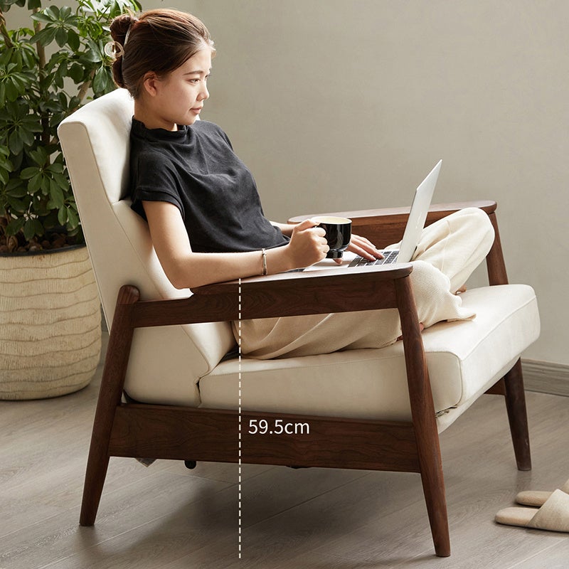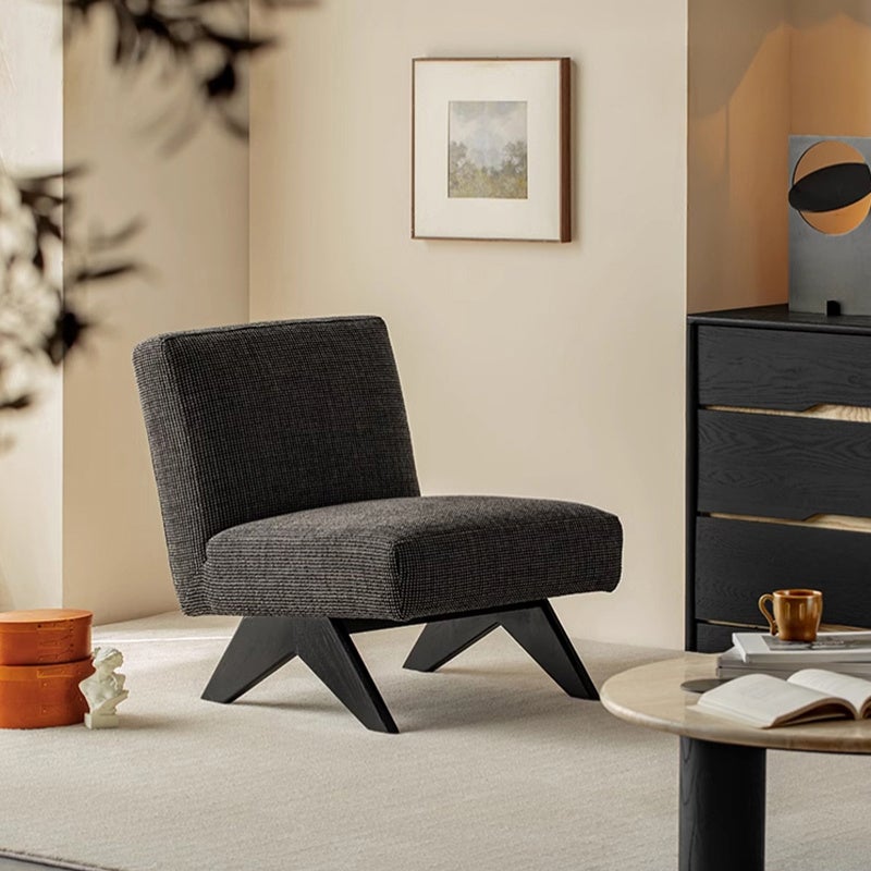 異素材の組み合わせで漂う大人の洗練感が特徴的なソファチェア。奥行きのある広い座面はゆったりと座れるだけでなく、高反発のクッションが体をしっかり支えて、長時間の使用でも快適さをキープ。グラニーツイード素材を使用することにより、独特の風合いと高級感が感じられ、耐久性も抜群。
