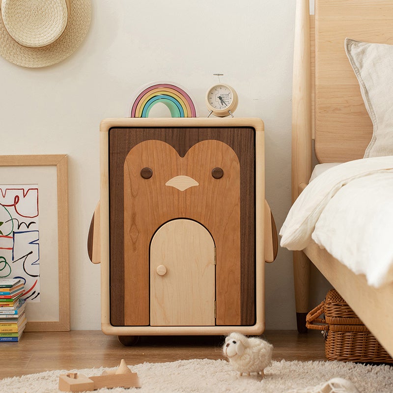 ペンギンモチーフが可愛らしいサイドキャビネットが登場。ウォールナット、チェリー、メープルの3種類の天然木素材を巧みに組み合わせ、木の温かみと個性的なデザインが魅力です。収納力が抜群で整理整頓もしやすく、安全性にも配慮された作りで小さなお子様がいる家庭でも安心して使えます。