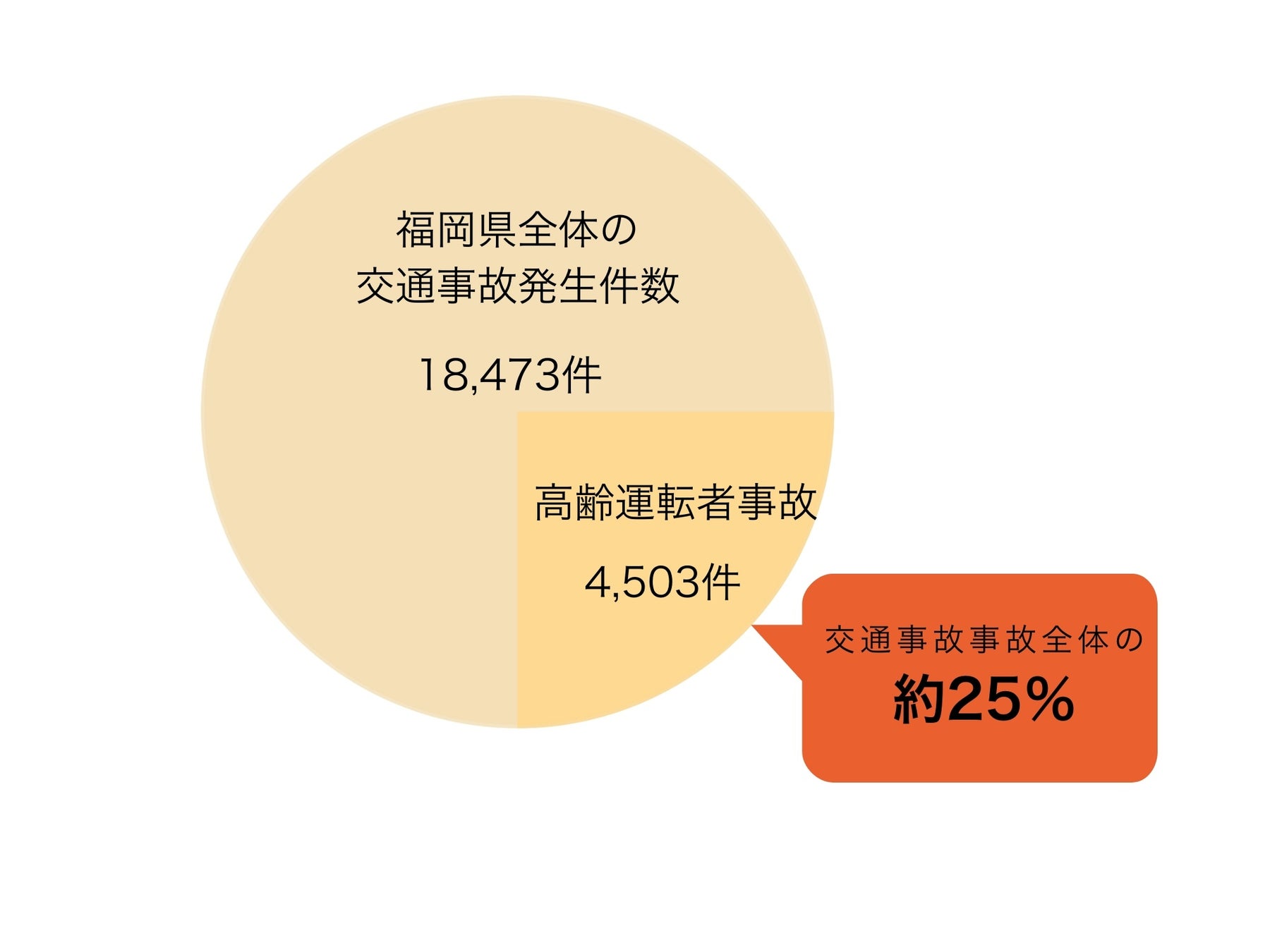 昨年福岡県内では、高齢者が運転する車による事故が 4,503件 発生し、県内全事故の約 25% を占めました。(福岡県警察本部『交通事故統計資料 2024年』)より