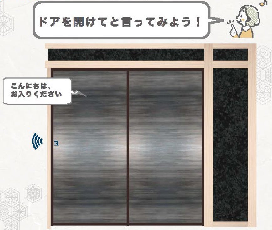 “しゃべる扉”は、高齢者や体の不自由な人に優しく話しかけ、時には話し相手となります。さらに、行動を見守り必要に応じて付き添い者に状況を伝えることもできます。人口減少や超高齢社会に向けた取り組みとして、日々進化するAIを導入したIoT技術を活用し、人とドアの可能性を広げていきます。
