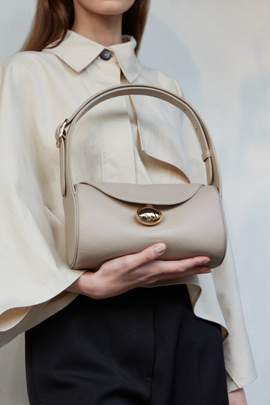 大自然のしずくや卵からインスピレーションを得たコロンとしたシルエットとエッグチャームが優雅さを引き⽴てる Drop Duffel シリーズ。しなやかでやわらかいイタリア製の本⾰を使⽤し、軽くてマグネット式開閉が魅⼒のフラップバッグは、見た目より高い収納⼒があり、⽇常使いやお出かけにおすすめ。新色のSmokeカラーは、シンプルな服と合わせるだけでコーディネートをおしゃれに仕上げてくれるニュートラルカラーです。
