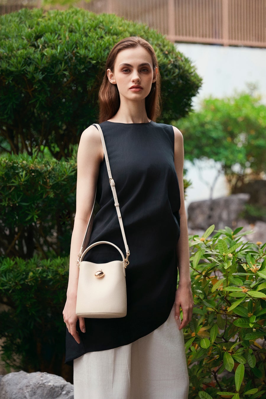 イタリア製⾼級ペブルドレザーから作られており、上品でオンオフ問わずに使えるBlackカラーと、春夏に似合う淡いベージュのIvoryカラーの2⾊を展開します。
