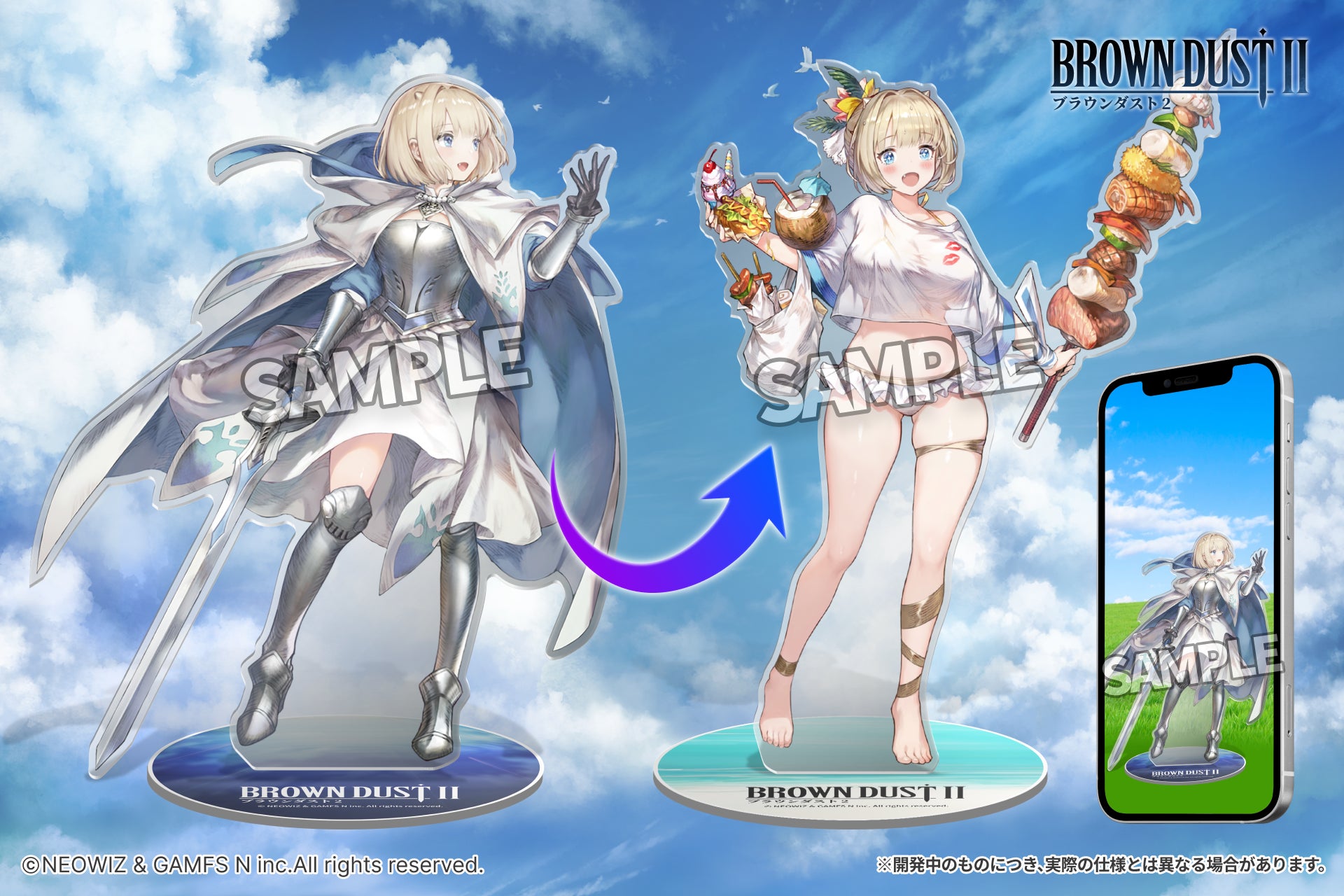 「ブラウンダスト2」のキャラクターたちが、BGMにのせて「変身する、動き出すARデジタルスタンド付きブロマイド・ステッカー(ゲームで使用できる「ガチャ券クーポンコード付き」)」を発売!