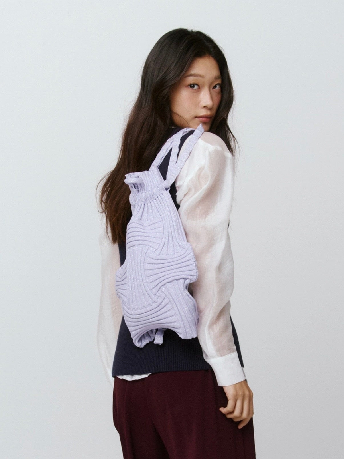 2017年に韓国初のプリーツバッグを発表して以降、PLEATSMAMAは素材と技術の革新を重ねてきました。2020年には「Return for Rebirth」プロジェクトを通じて廃ペットボトル由来のリサイクル糸を本格採用し、2022年には廃漁網を再利用したプリーツバッグを開発。