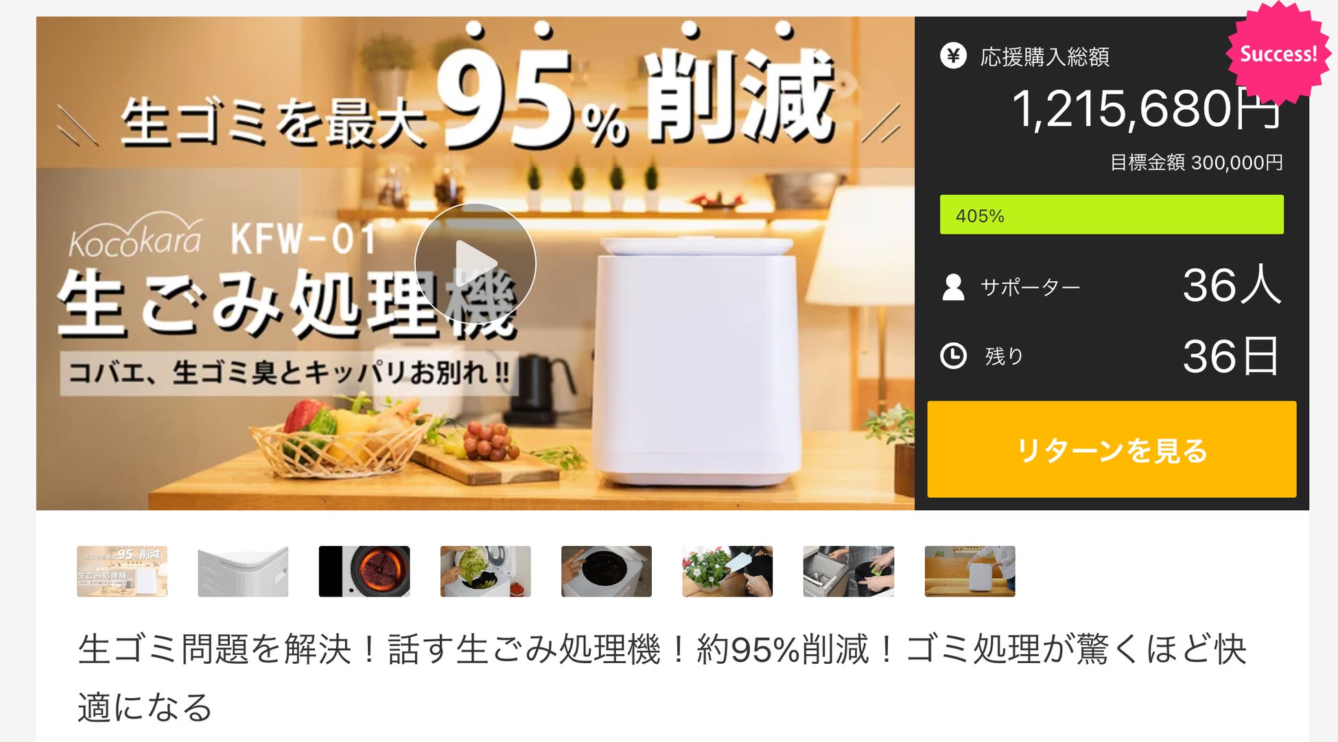 Makuakeにて【わずか開始9時間で100万円超え達成!!】誰でも簡単操作!生ゴミを入れてワンタッチするだけで「生ゴミ臭、コバエ、排水溝の滑り」などの生ゴミ問題を解消!