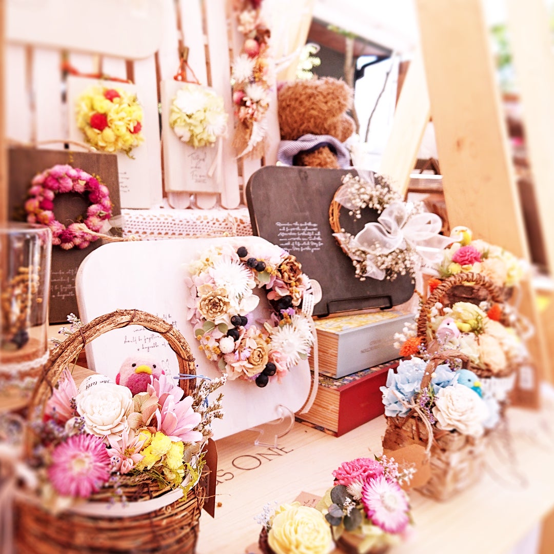 ワークショップでは貴重な時間を楽しく過ごせるよう作り方を工夫しています。販売作品はトレンドを意識しながら長く楽しめる作品を制作しています。