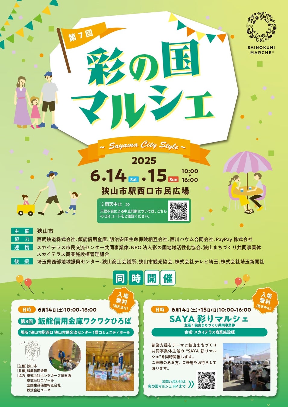 NPO法人 彩の国地域活性化協会(拠点:埼玉県さいたま市、代表理事:佐々木 輝伸)が主催する「彩の国マルシェ」は、2025年6月14日と15日の2日間、埼玉県狭山市にある「狭山市駅西口市民広場」にて「彩の国マルシェ~Sayama City Style~」を、狭山市産業労働センターにて「SAYA彩りマルシェ~Produced by SAINOKUNI MARCHE~」を同日開催いたします。
