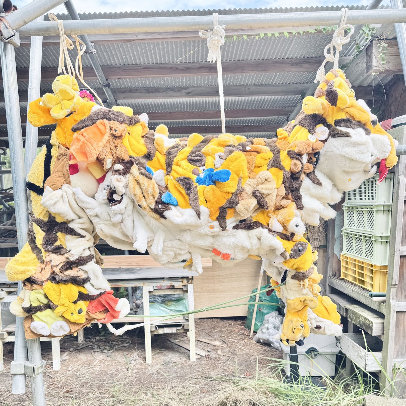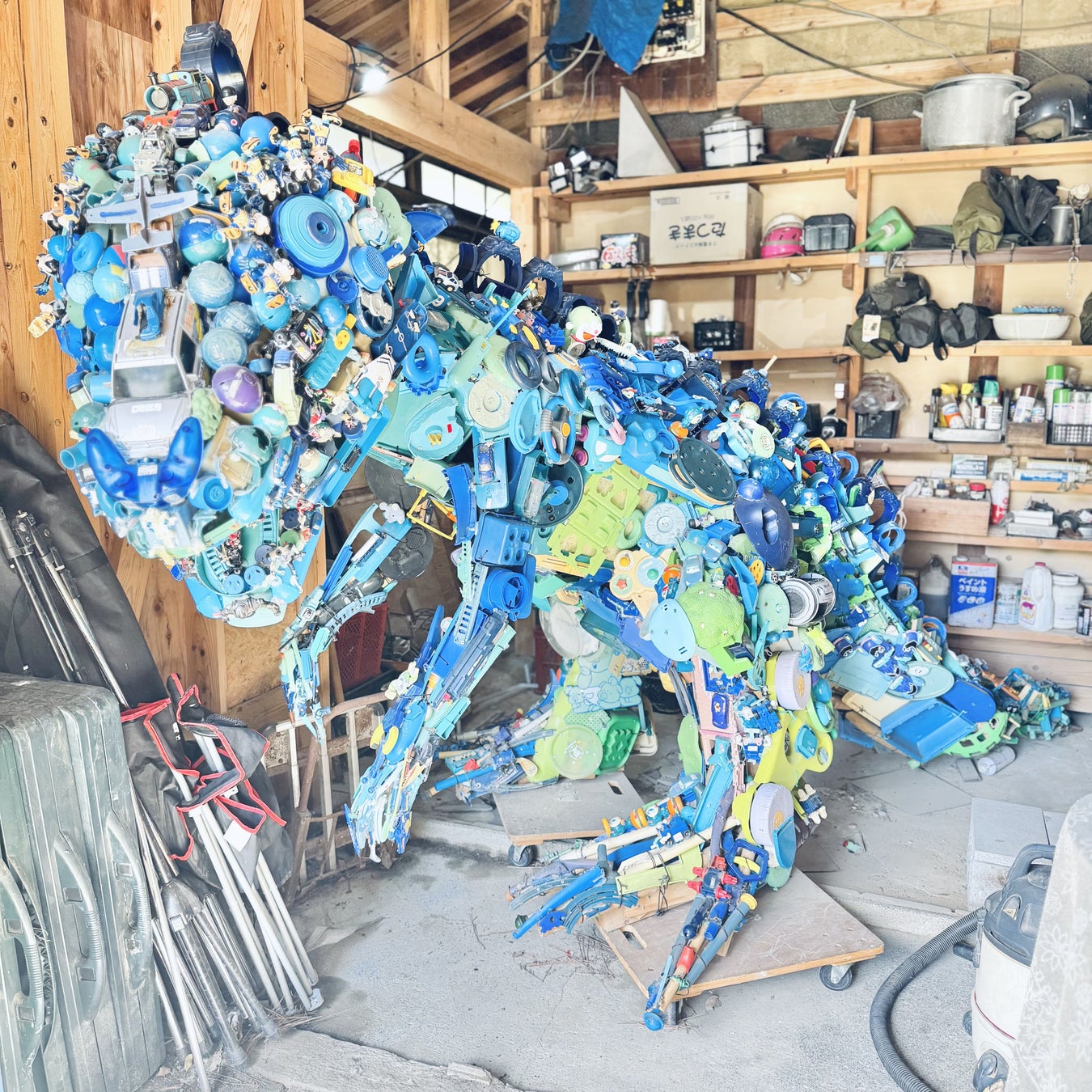 一方、美術家・藤浩志は、いらなくなったおもちゃやぬいぐるみを素材に、動物や恐竜・鳥といった存在へ生まれ変わらせる表現を続けてきました。