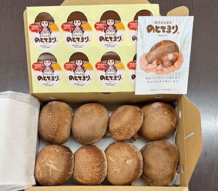 奥能登で多く栽培されている原木しいたけは、能登の気候風土に適して大きく育ち「のと115」の名で出荷されていますが、その中でも、傘8cm以上、肉厚3cm、巻き込み1cm以上という規格を満たしたものだけが「のとてまり」として出荷されます。