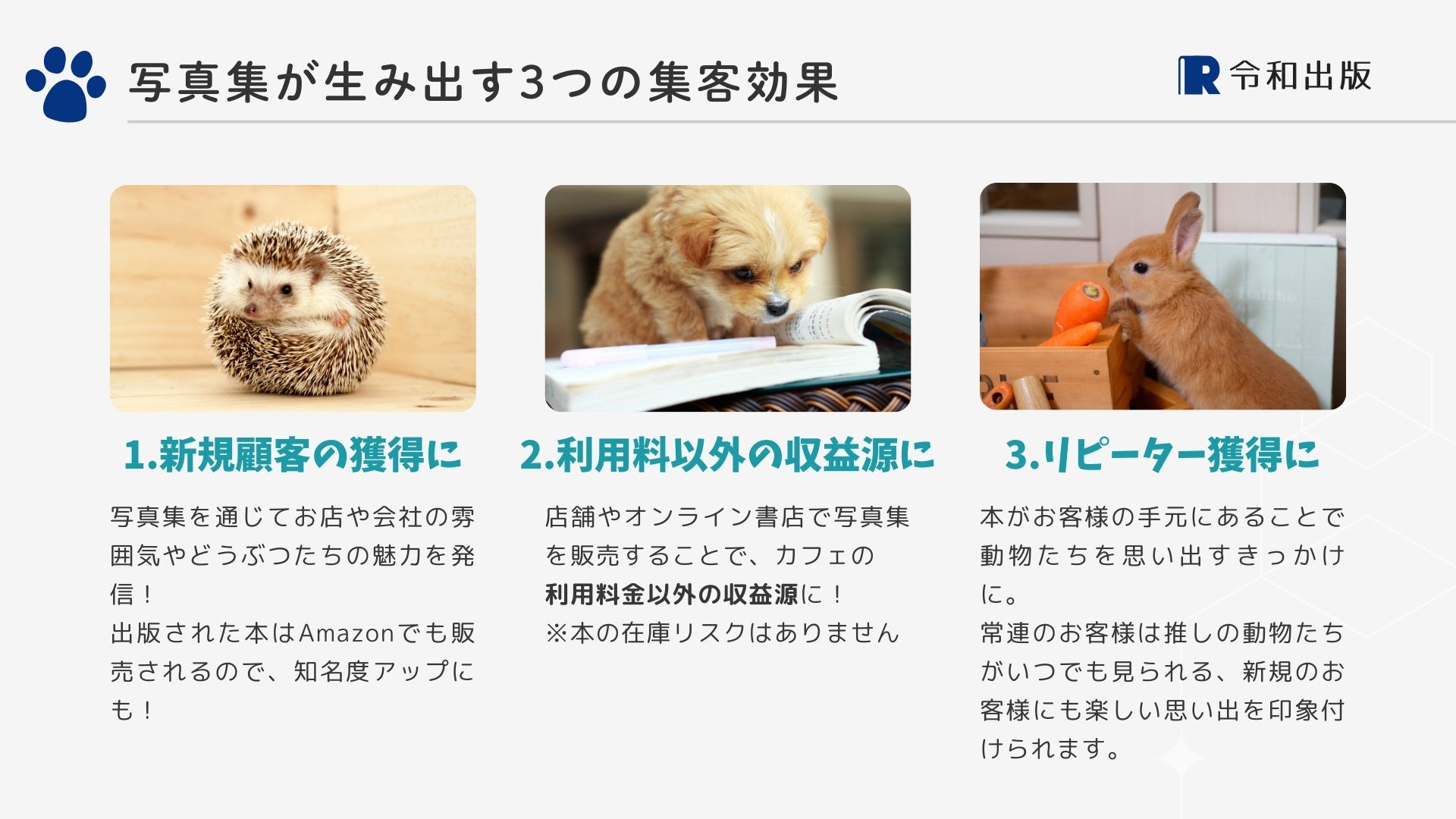 令和出版ではこの度、新たな出版企画として「動物が主役になる写真集プロジェクト」をスタートしました。