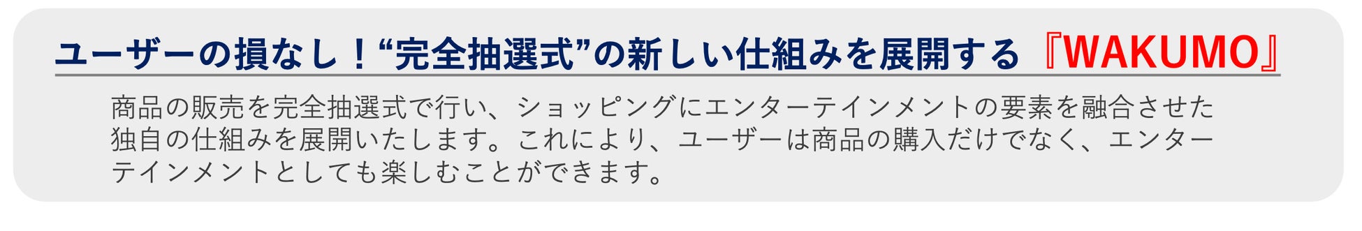 ショッピングとエンターテイメントが融合した新サービス完全抽選式のECモール『WAKUMO』開始 ユーザーと出店企業の双方へこれまでにない革新的な仕組みを展開