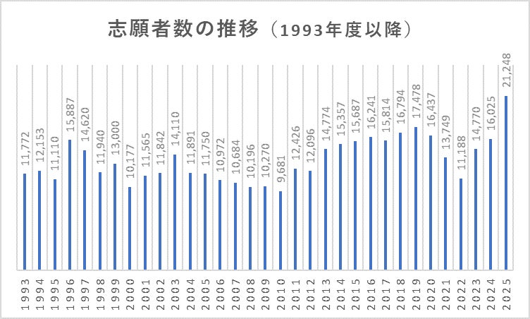 関西外国語大学・短期大学部(大阪府枚方市)の2025年度入試で、大学の志願者が2万1248人と1966年の大学設置以来、初めて2万人を超えました