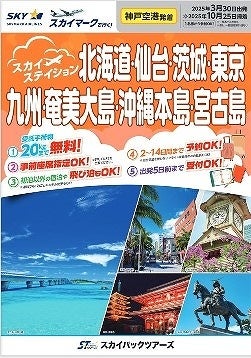 スカイパックツアーズ株式会社(本社:東京都中央区、社長:横山正巳)は、スカイマークを利用したパッケージツアー「スカイステイション」【神戸空港発着】【中部国際空港】(2025年3月30日出発~10月25日帰着)の販売を開始しました。