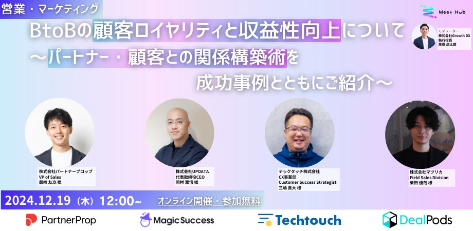 【12/19開催ウェビナー】BtoBの顧客ロイヤリティと収益性向上について~パートナー・顧客との関係構築術を成功事例とともにご紹介~