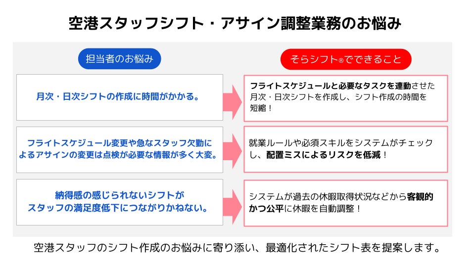 〜航空業界の専門ルールやスタッフの保有スキル情報をシステムが一元管理し、適切な月次・日次シフトを自動で作成!シフト管理業務のDXを推進~
