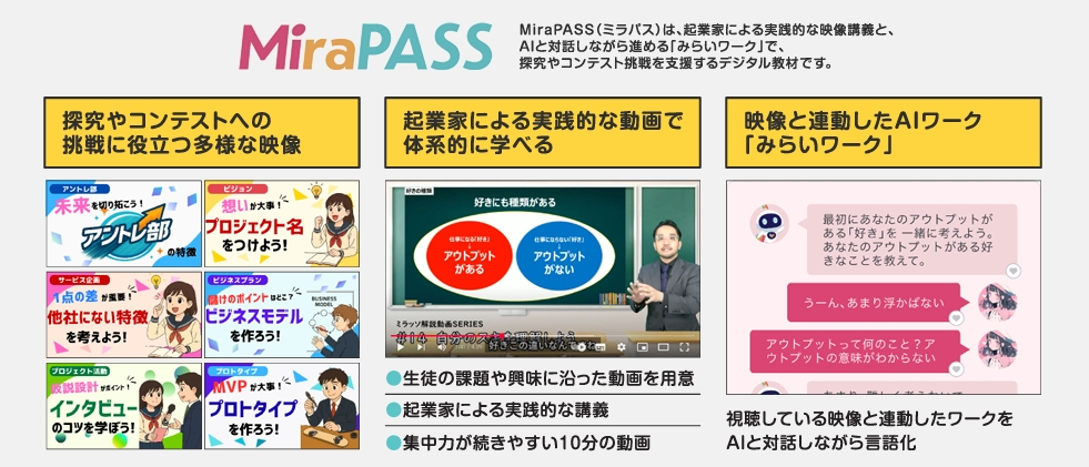 ■AIと起業家が壁打ち相手に。「MiraPASS」が提供する新しい探究学習