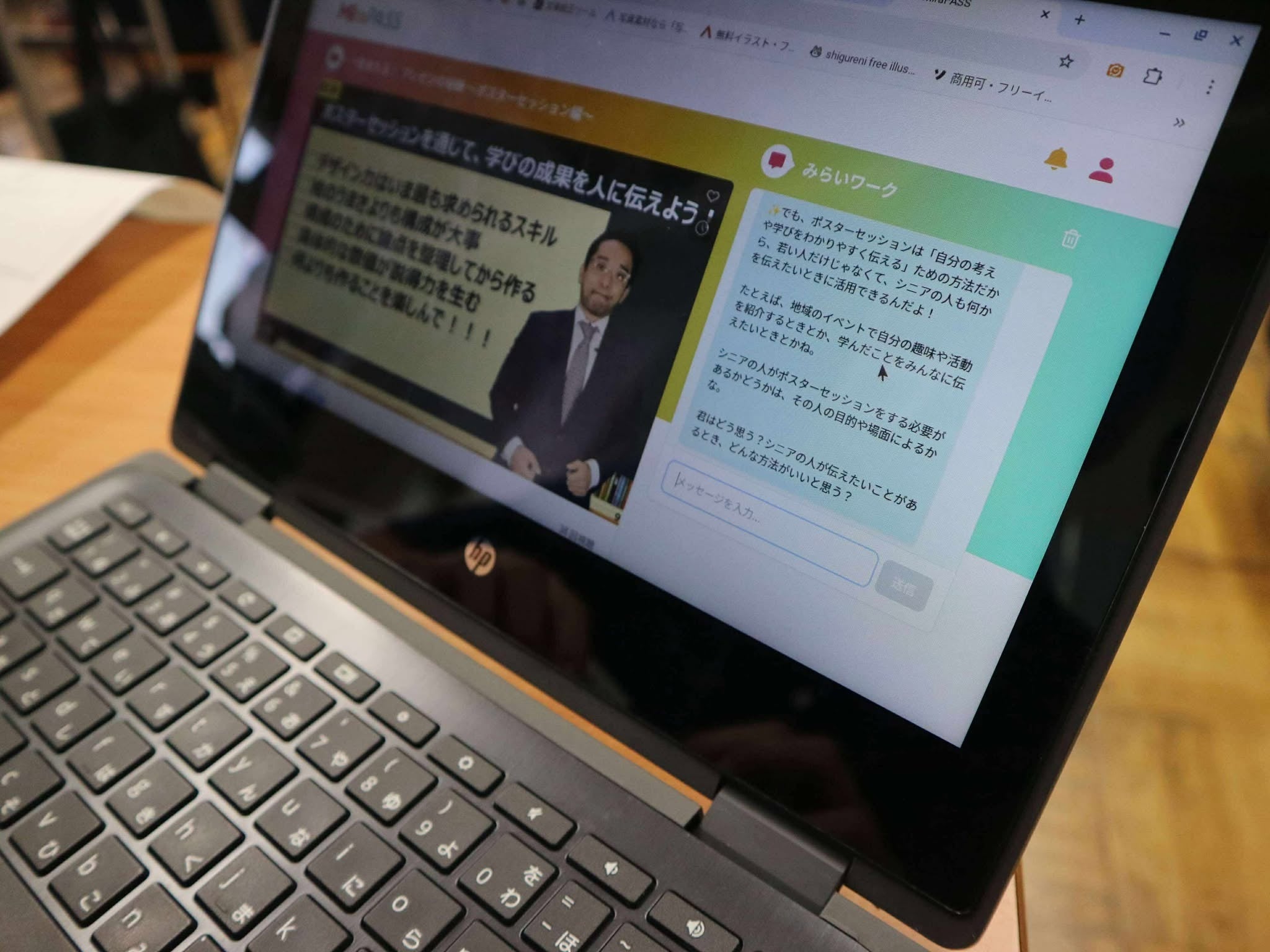 視聴後には、映像と連動したAIチャット「みらいワーク」との対話を通じて、自身の考えを深掘りします。「好きなことは何か?」「なぜそれに興味があるのか?」「社会のどんな課題を解決できるか?」といったAIからの問いに答えることで、生徒は思考を言語化し、自分だけの探究テーマを具体化していきます。