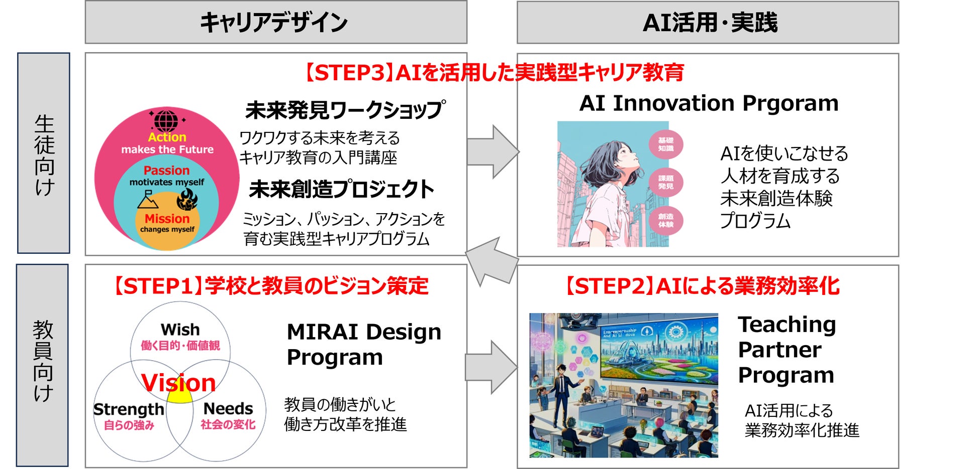 本導入は、生徒一人ひとりが自身の興味・関心から社会とのつながりを見出し、主体的に未来を切り拓く力を育むことを目指すものです。また、質の高い探究学習を、教員の専門スキルや準備時間に依存せず実現することで、教育現場の働き方改革にも貢献します。
