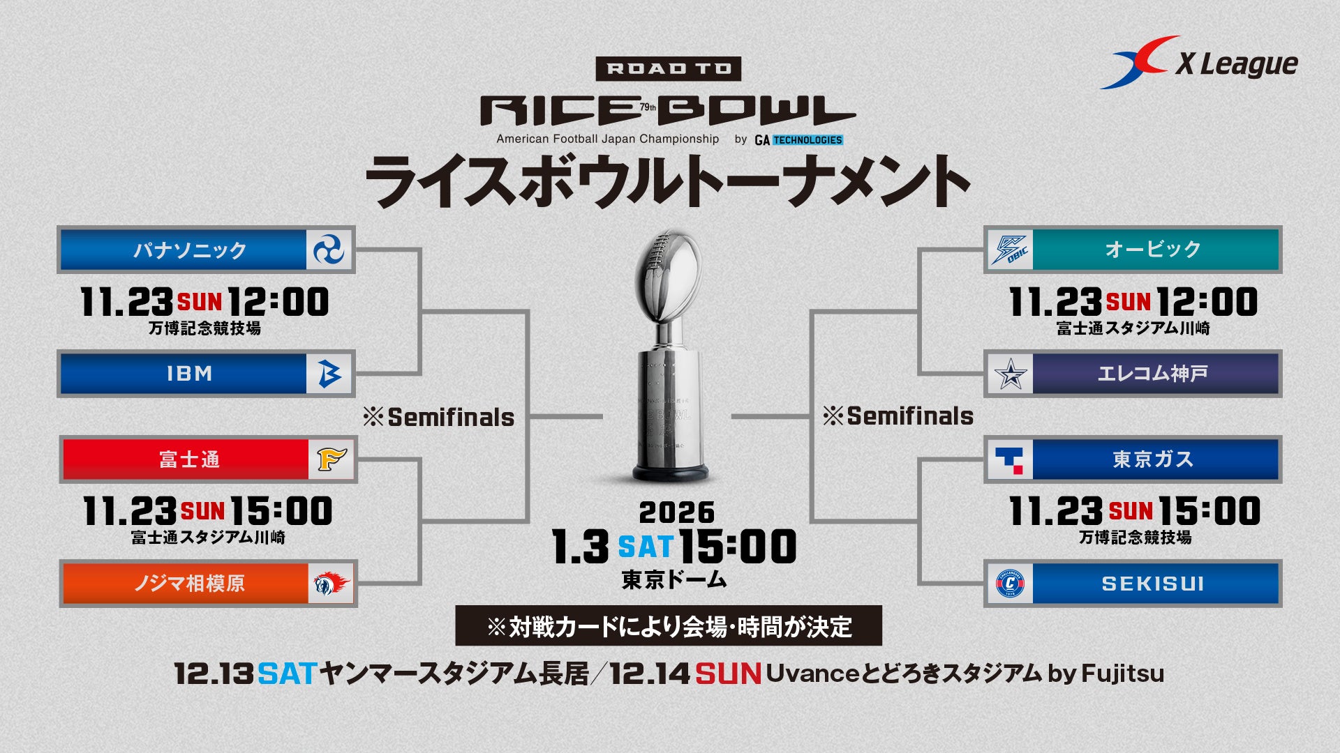 SEKISUIチャレンジャーズはX1 SUPERレギュラーシーズン3位通過として、「第79回ライスボウル」出場を懸けたトーナメントに進出。