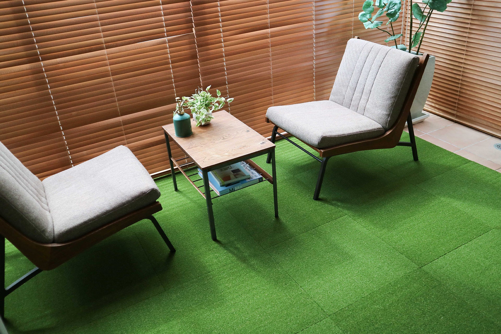 「人工芝×家庭用タイルカーペット」の新発想!お部屋の中を”緑化”。自然な風合いで芝生のある暮らしを再現する「人工芝ホームタイル shiba-cocohi(シバココチ) 」が、遂に新発売!