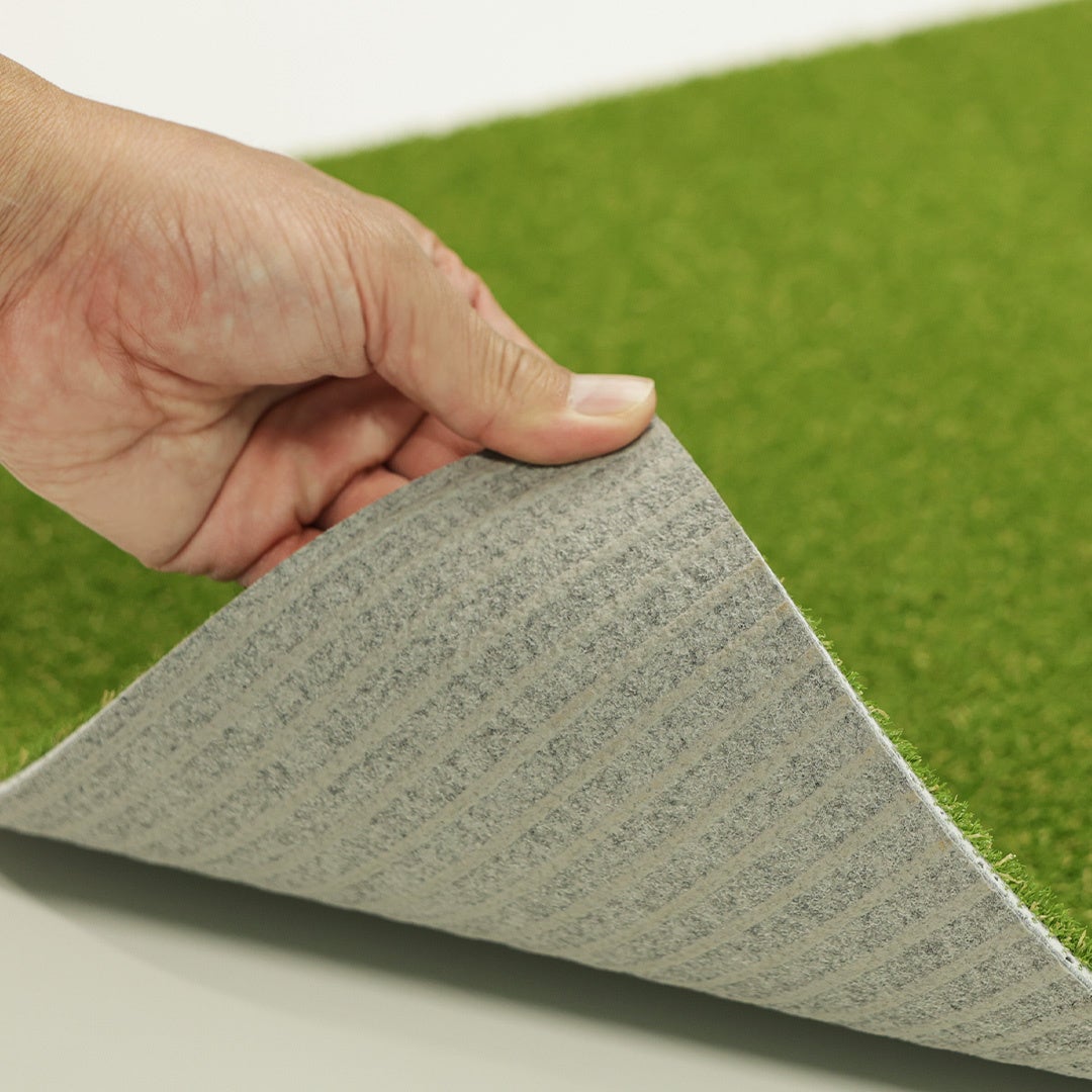 グリーンとブラウンの糸を絶妙に組み合わせ、リアルな芝の表情を再現。硬すぎず柔らかすぎない心地よい肌触りで、さまざまな用途にお使いいただけます。当社の家庭向けタイルカーペット「ホームタイル®」と同様に、裏面には滑り止めの特殊加工を施しており、施工も置くだけで簡単。一枚ずつ取り外して洗えるタイルカーペットならではの便利さはそのままに、手軽に芝のある空間をお楽しみいただける人工芝タイルです。