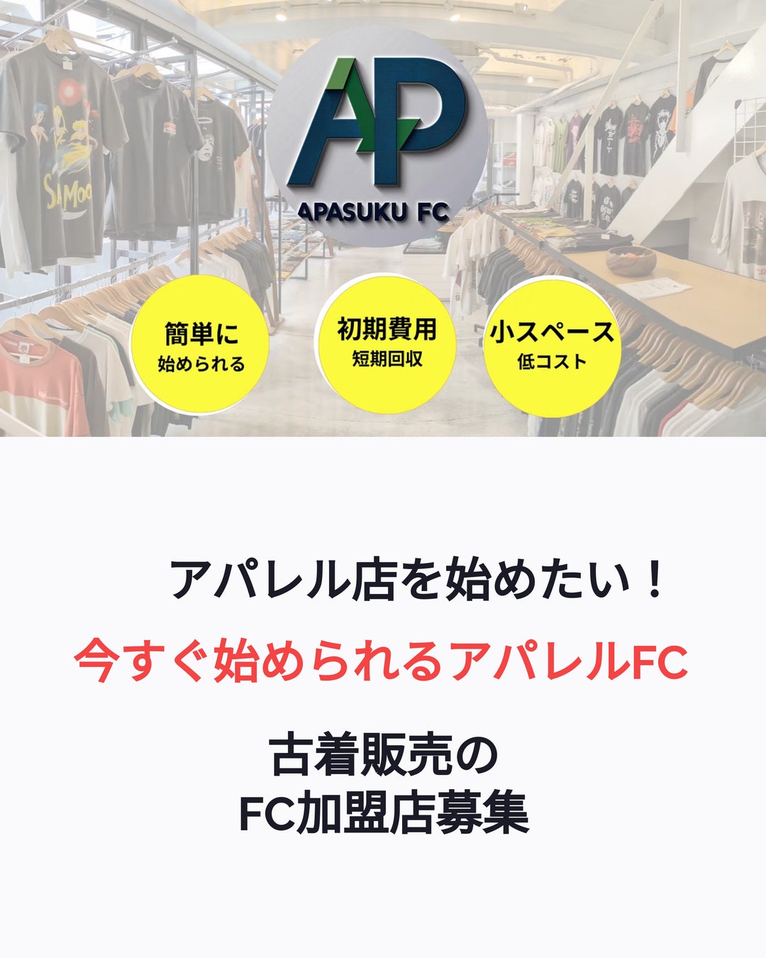 株式会社シノ商店(本社:東京都杉並区高円寺/代表取締役:篠原孝昌)は、個人の開業希望者を対象に、小規模アパレル販売の実地育成プログラム「アパ塾」を正式開講いたします。あわせて、在庫リスクを抱えない新型フランチャイズモデル「アパスクFC」を同時スタートいたします。