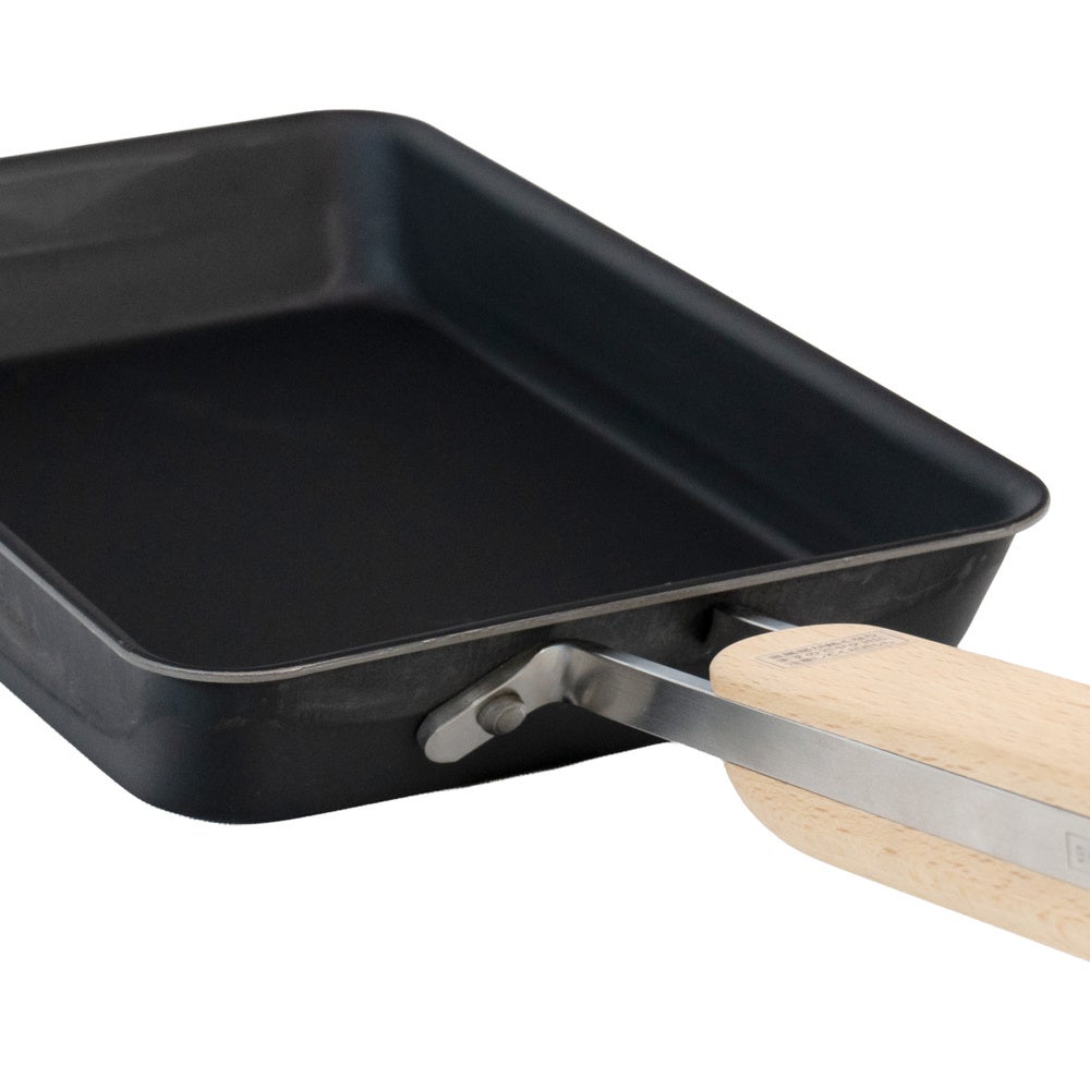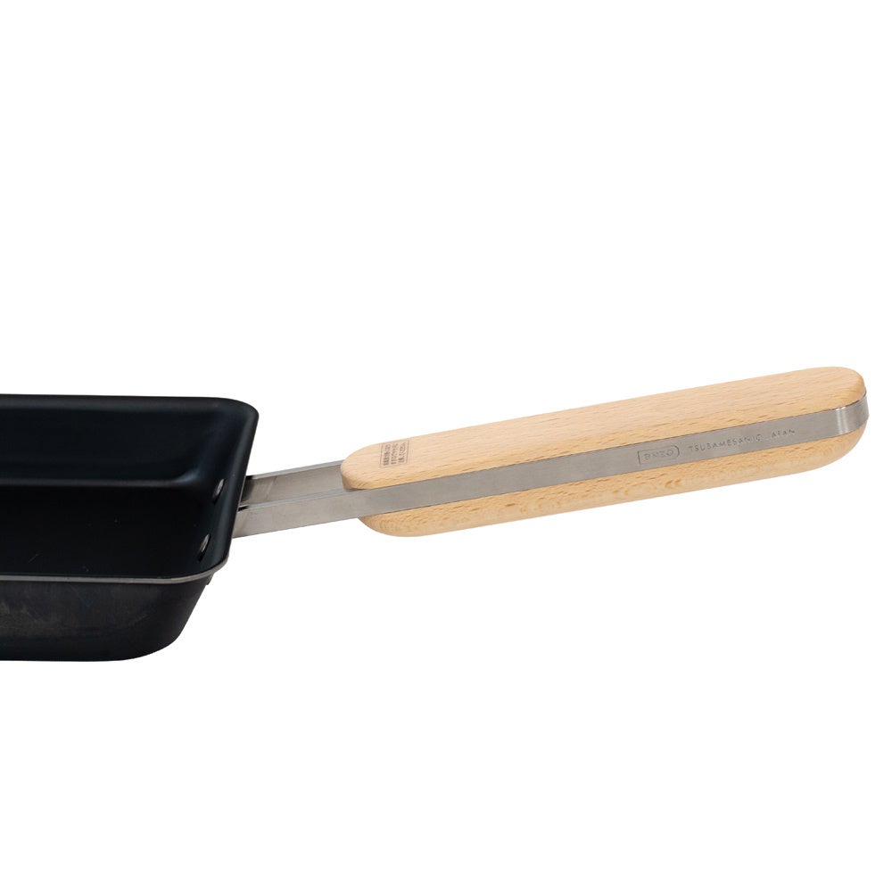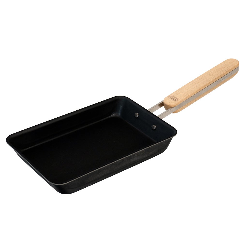 熱ムラが少なく蓄熱性に優れた鉄製の玉子焼き器です。2人前サイズを作るのに使いやすい、幅が少し小ぶりな大きさです。
