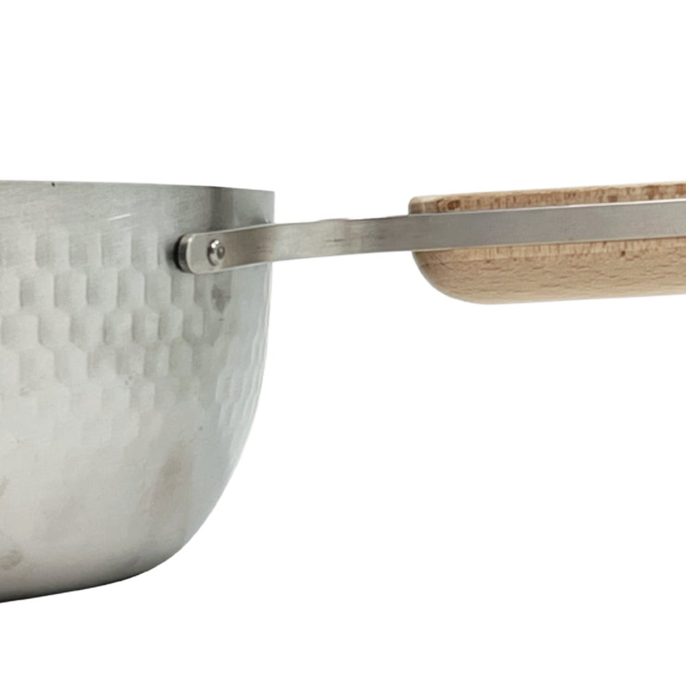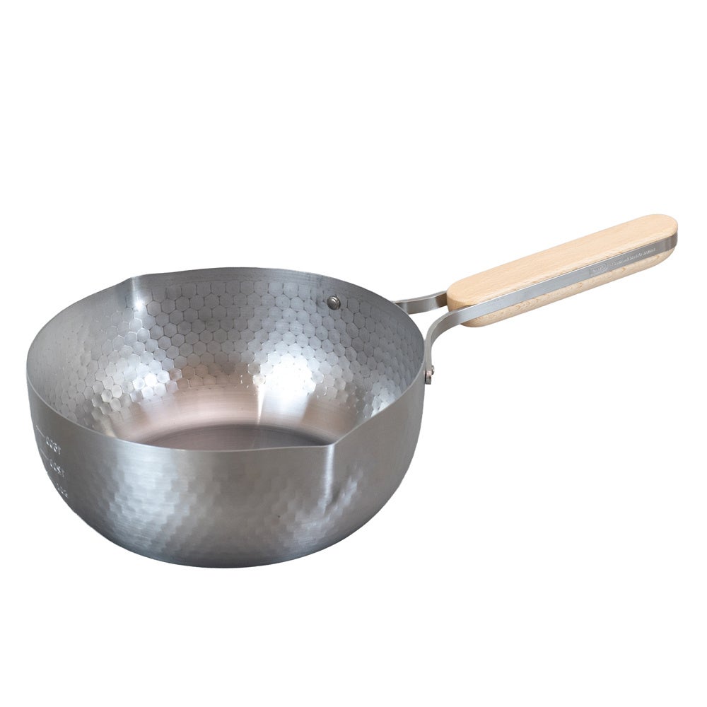 昔ながらの金型を使ったステンレス雪平鍋です。本体には槌目加工を施し適度な厚みで強度も確保しました。たっぷりとしたゆとりある形状に、注ぎ口が左右に二つ。内面は調理に便利な目盛りを刻印して調理がしやすくなっています。お手入れしやすいステンレス製なので末永くお使いいただけます。