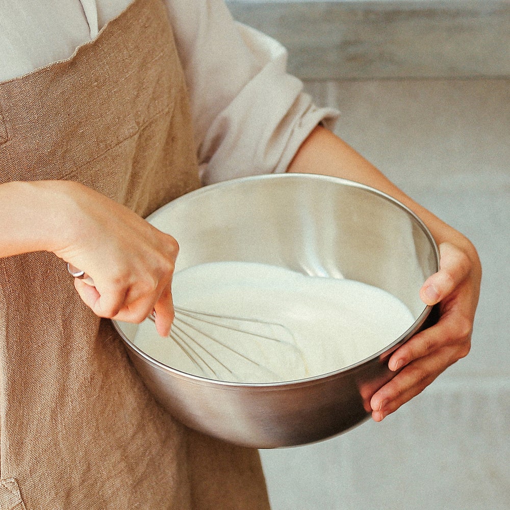 調理のさまざまなシーンで使われるボール。使い勝手の良い形の答えは、製造工場にひっそりと眠っていた深めの金型でした。生産効率優先の流れから、使われなくなった深めで膨らみのある形状。かき混ぜる時に飛び散りにくい適度な深さ。持ちやすくてこねる作業でもしっかりと力を入れられる安定感。こだわりのフチ形状と側面から見たときの曲線美にもご注目ください。