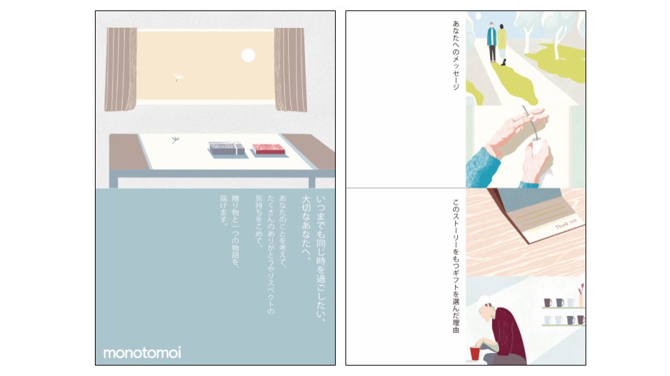 また、普段使いのギフトとしてもご利用いただける「monotomoi」(旧:colettene)も運営しております。誕生日や父の日・母の日など、大切な方への贈り物にご活用ください。
