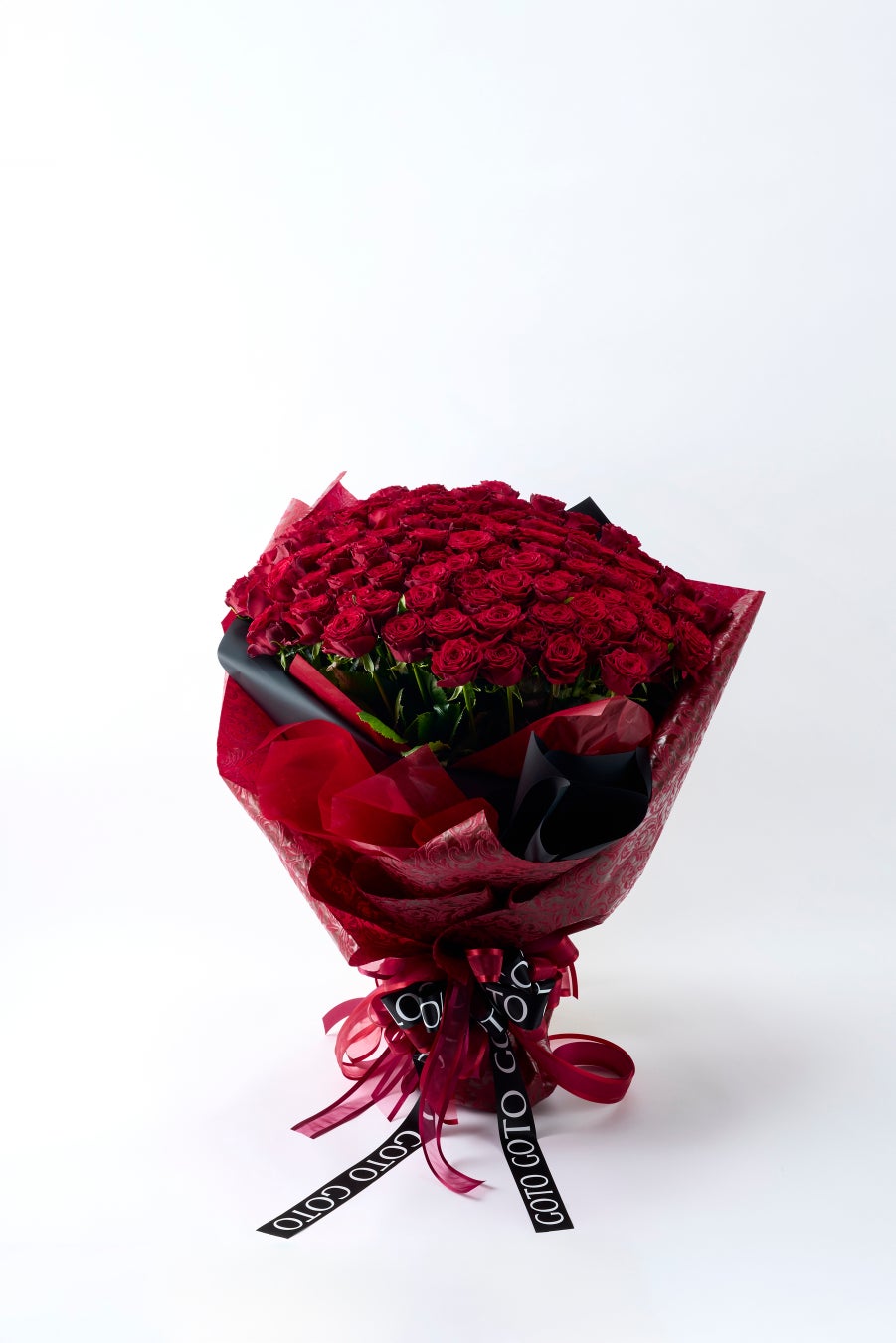 100本の赤いバラが放つ圧倒的な美しさと存在感。永遠の愛を誓うにふさわしい、究極のフラワーブーケです。息をのむほど豊かなボリュームと、ゴトウフローリストならではの繊細なデザインが融合し、一生に一度の瞬間を華やかに彩ります。プロポーズや特別な記念日に最もふさわしい贈り物です。