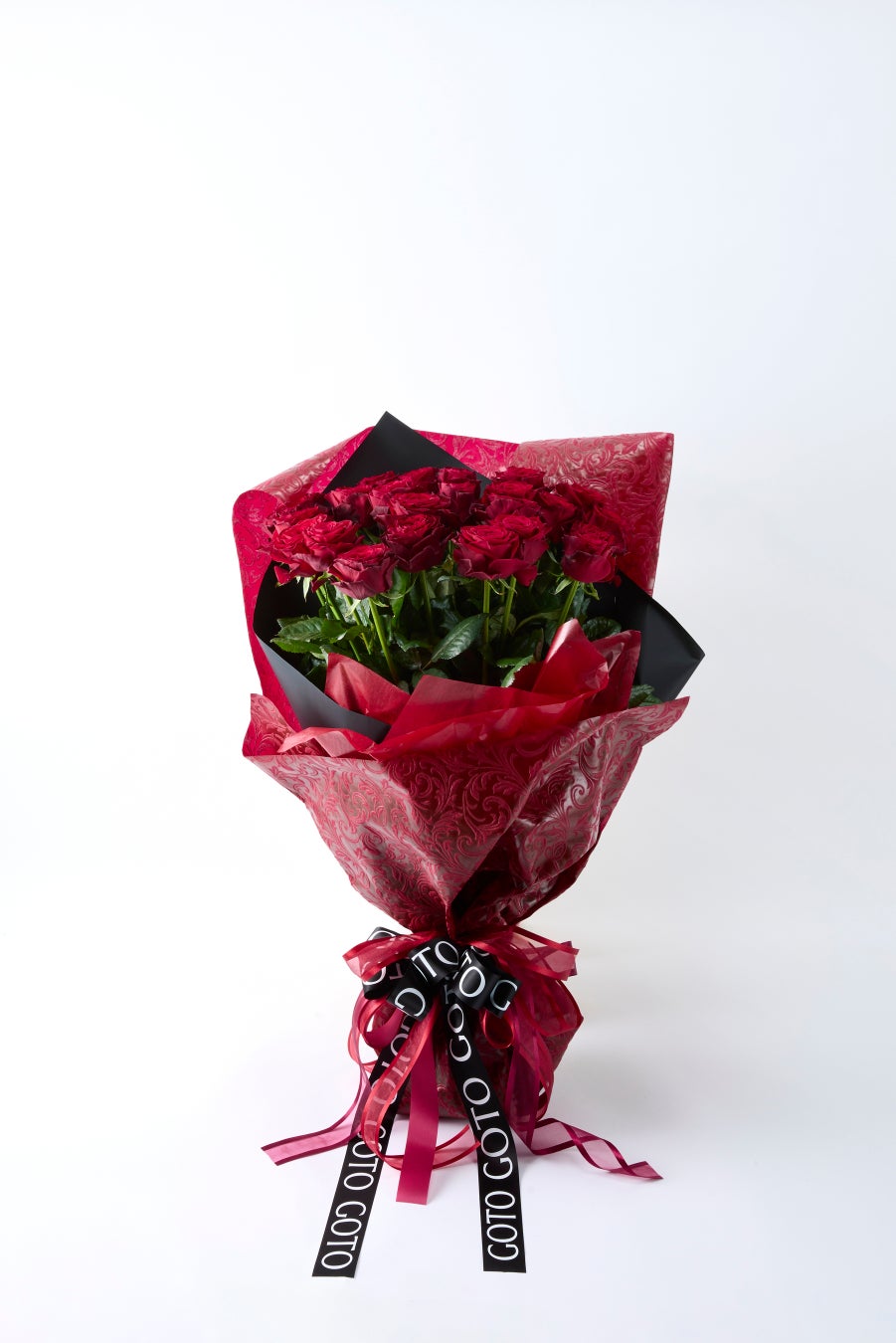 GOTO ROSEは、ゴトウフローリストが誇る「特別な赤」。その深い色合いと力強い存在感は、言葉を超えて想いを伝えるための象徴です。選び抜かれた産地・品種・品質管理のすべてにこだわり、花の命を最大限に引き出すプロフェッショナルによって仕立てられた、まさに「ゴトウフローリストの顔」とも言える一輪です。