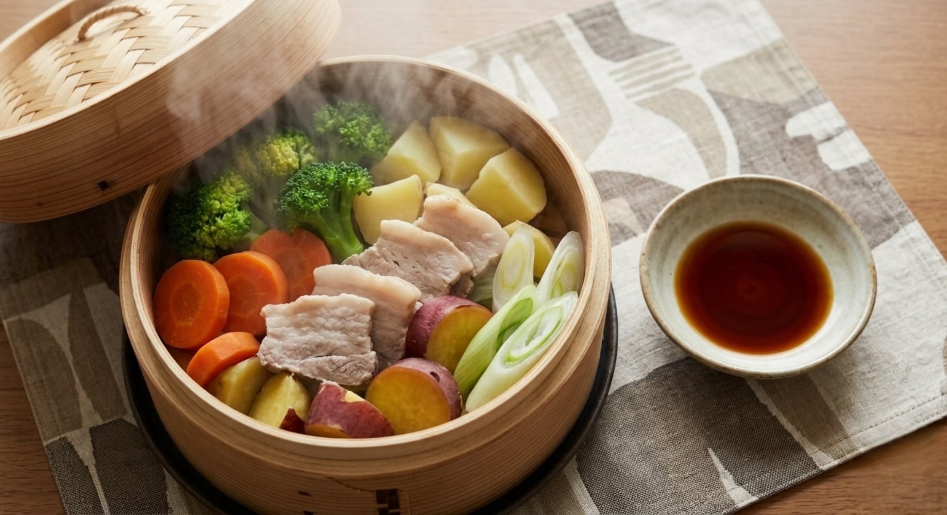 流行りのせいろ蒸しも、付けダレで飽きずにいつまで美味しく、