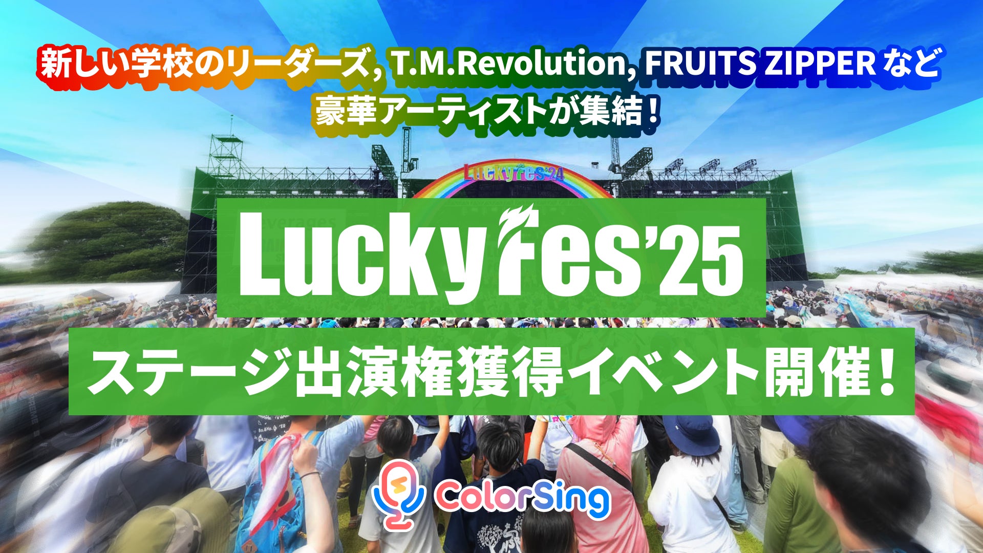 LuckyFesは、2024年の3回目開催に動員数が6万人に達しました。4回目開催となるLuckyFes’25では、POPS、ROCK、HIPHOP、アニソン、アイドル、K-POPなど多様なジャンルより、新しい学校のリーダーズ、T.M.Revolution、FRUITS ZIPPERなどの豪華アーティストが出演する予定です。さらに、ステージの出演者枠にはColorSing枠(45分間)も決定しています。